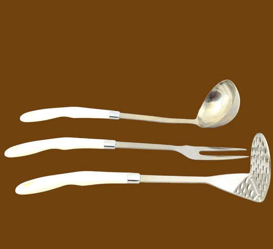 Serving Utensils Set with White Storage Hanging Stand