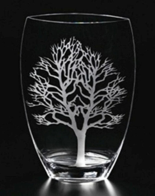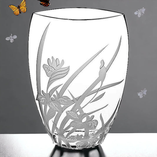Decorative Vase | 12 inch Crystal Vase with Etched Gold Leaves Design