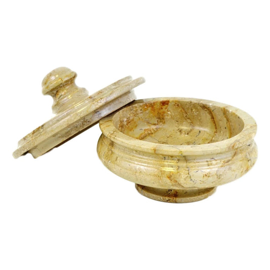 Marble Wastebasket Crafted from Sahara Beige Marble