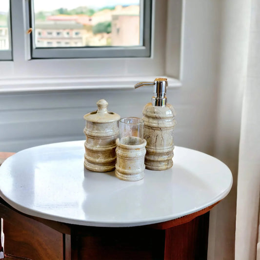 3 Piece Bathroom Accessory Set- Elegant Bathroom set in Sahara Beige Marble