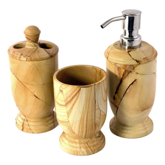 3 Piece Bathroom Accessory Set of Sahara Beige Marble